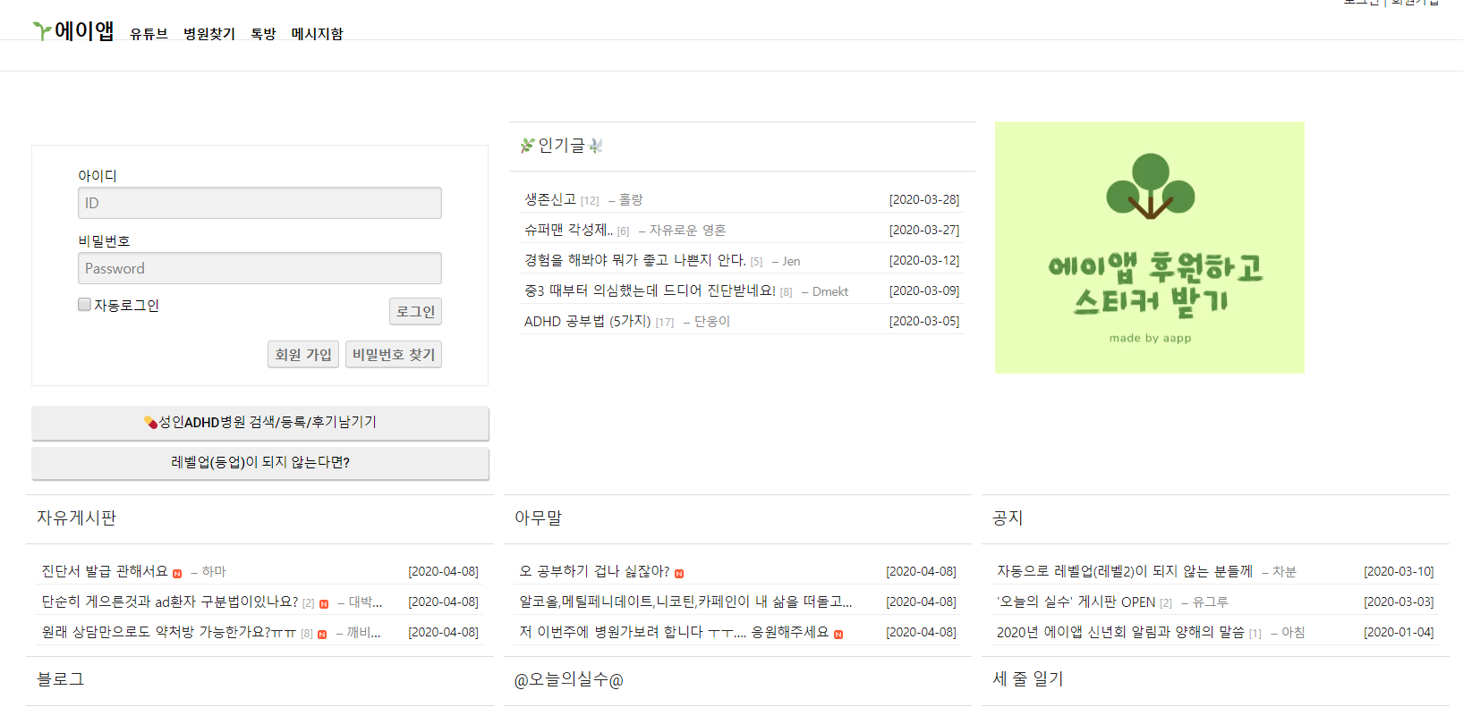 A-app 사이트는 성인 ADHD를 겪으신 분들이 만든 커뮤니티로써